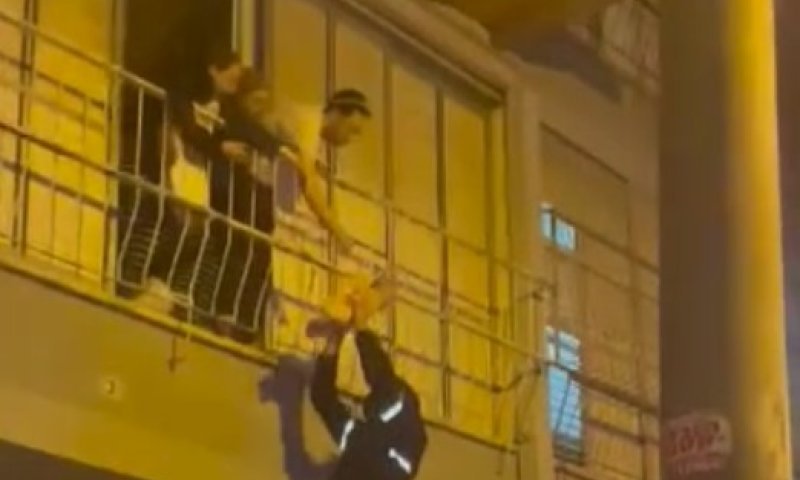 תיעוד מהזירה מציג חילוץ של פעוט בן כמה חודשים ואת בני משפחתו באמצעות סולם שהביא במהירות אחד השכנים.