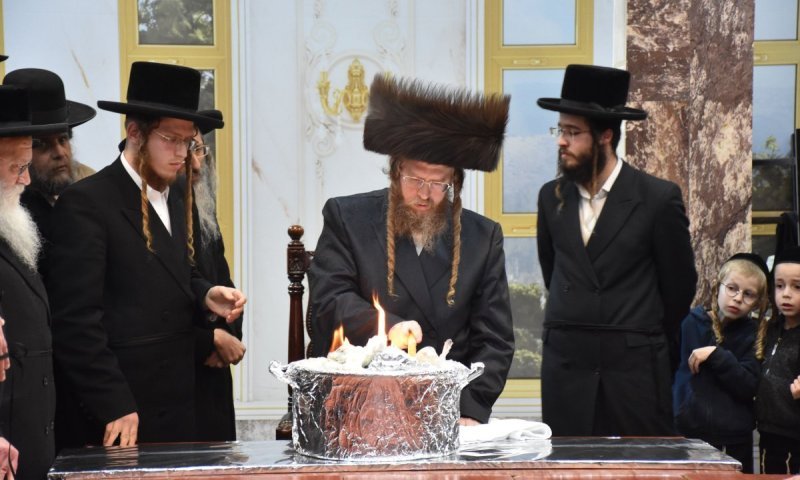 מראות מזאת חנוכה שומרי אמונים, האדמו"ר מסובב את הסביבון, חלוקת מעות חנוכה, שפיכת השמן להדלקת הפתילות של חנוכה, ומעמד שריפת הפתילות בהשתתפות קהל חסידי בית שומרי אמונים בבית המדרש של החסידות בבני ברק. הצלם יהודה פרקוביץ מגיש גלריה