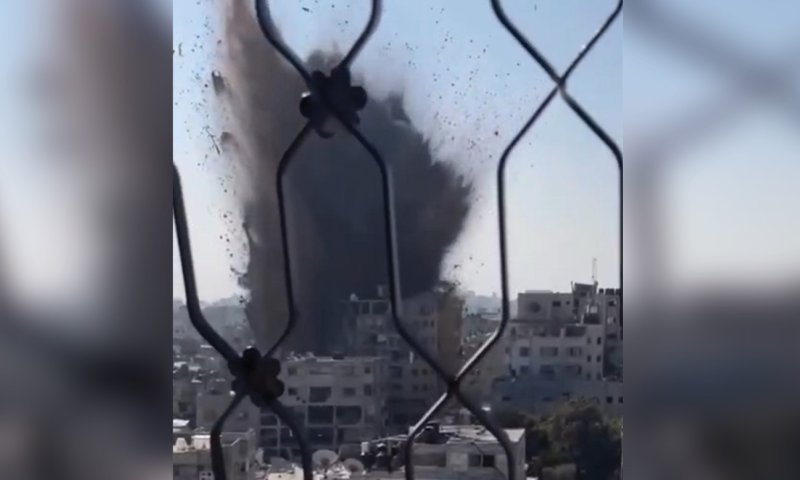 העימותים ברצועת עזה נמשכים בעוצמה. תיעוד חדש שפורסם היום (שני) ברשתות החברתיות תופס את הרגע שבו מבנה המשמש את ארגון הטרור חמאס נהרס כליל בפיצוץ עז