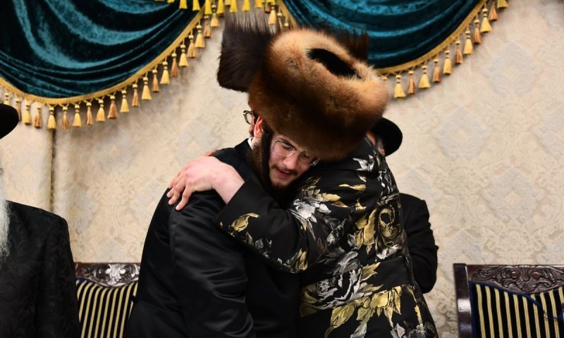 החתן מספינקא נפל על צווארי אביו בשמחת אירוסיו