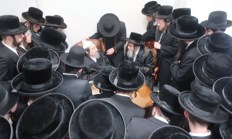יחד עם בחורי הקהילה: הרבי מדינוב בביקור אצל פאר הדור
