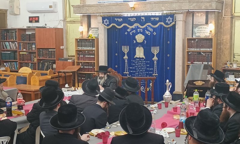 מיד לאחר מכן נכנס האדמו"ר לביהמ"ד ונטל ידיו לסעודה. האדמו"ר איחל לחיים והחל לשאת דברי תורה והדרכה ישרה - שמועס בעניינים יסודיים בעבודת השי"ת והעבודה עתה בימי הספירה כאשר השמועס נמשך למשך כשעה.