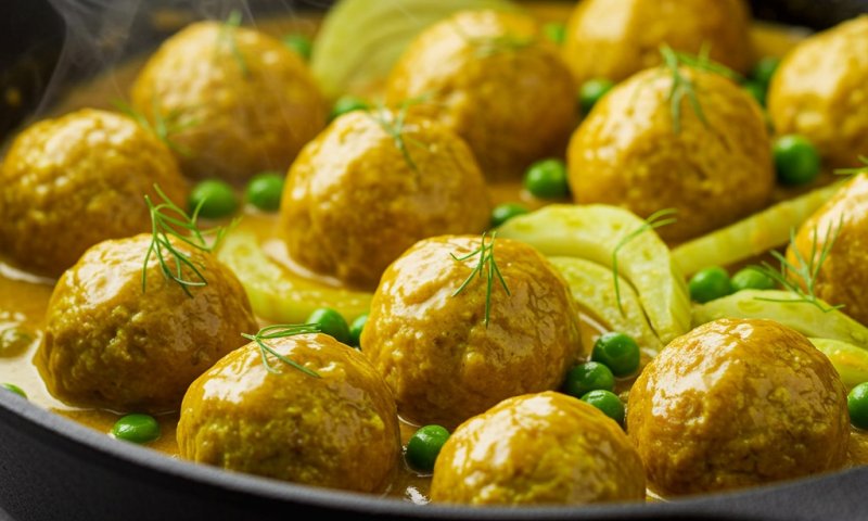 רך ומהביל: תבשיל קציצות הודו עם אפונה ושומר