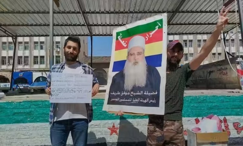 אתמול (שבת) בהר הדרוזים א-סווידאא' שבדרום סוריה, תועדו שלטים בעברית הקוראים להגנה בינלאומית, לצד תמונתו של המנהיג הרוחני של העדה הדרוזית בישראל, השייח' מופק טריף, ודגל העדה הדרוזית עם ציור של מגן דוד.