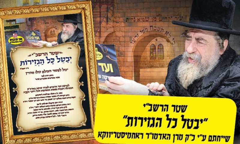 שליח מיוחד שמונה על ידי כ"ק האדמו"ר מראחמיסטריווקא שליט"א, יביא ישירות אל בתי התורמים את 'שטר הרשב"י', שנחתם על ידי האדמו"ר, במיוחד עבור התורמים "לצדקת ועד הרבנים לעניני צדקה בארה"ק, המצילה רבבות נפשות במצוקה מכל רחבי הארץ".