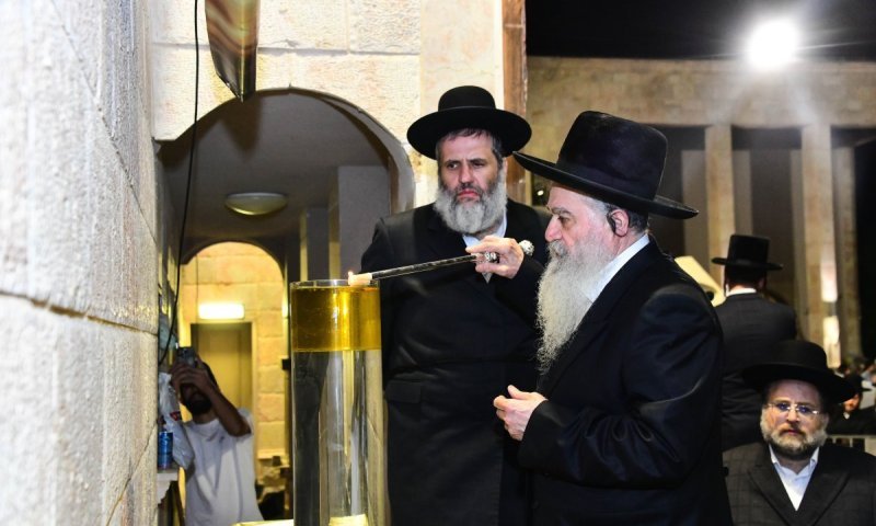 בחצר בית מדרשו במושב: ההדלקה של האדמו"ר רבי רפאל אבוחצירא