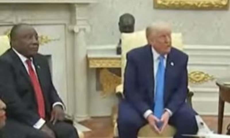 טראמפ החזיק תמונות של דרום אפריקנים לבנים שלדבריו נרצחו. "אנחנו הולכים לדבר על זה". רמפוזה נראה המום וניסה להצטדק על הטענות לעיני המצלמות, קרוב לשלושה חודשים אחרי הצעקות בין טראמפ לנשיא אוקראינה וולודימיר זלנסקי, שבעקבותיה גורש זלנסקי מהבית הלבן אך מאז ההדורים יושבו.
