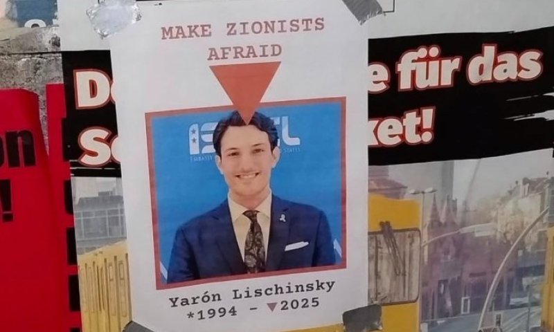 דיוקנו של הישראלי שנרצח בשבוע שעבר בפיגוע בוושינגטון הוצג בגרמניה לצד הכיתוב "הפחד את הציונים"