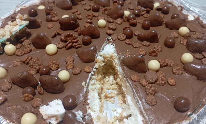 - הכנת הגנאש: בסיר ממיסים את השוקולד עם השמן ומערבבים היטב, מכבים את האש ומטמיעים פנימה את הקצפת ששמרנו בצד. שופכים בזהירות על שכבת הגבינה.