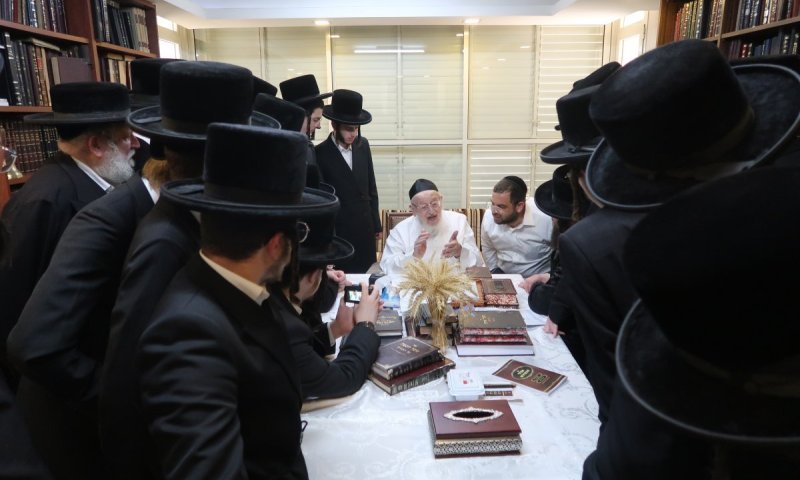 תלמידי הישיבה גדולה דחסידי פיטסבורג עלו למעונו של רבינו ראש הישיבה הגאון רבי מאיר צבי ברגמן לשיחת חיזוק והכנה לקראת חג מתן תורה, כשבראשם ראש הישיבה המשפיע הגה"צ רבי יעקב לייפער ושאר רבני הישיבה.
