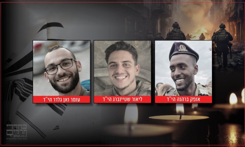 סמ"ר ליאור שטיינברג (20) מפתח תקווה, סמ"ר אופק ברהנה (20) מיבנה וסמ"ר עומר ואן גלדר (22) ממעלה אדומים, לוחמי גבעתי, נהרגו מפיצוץ מטענים בג'באליה שבצפון רצועת עזה | התקרית ארעה לאחר שבאו לחפות על אירוע מטען שהתפוצץ על כלי צהל"י נוסף | הי"ד