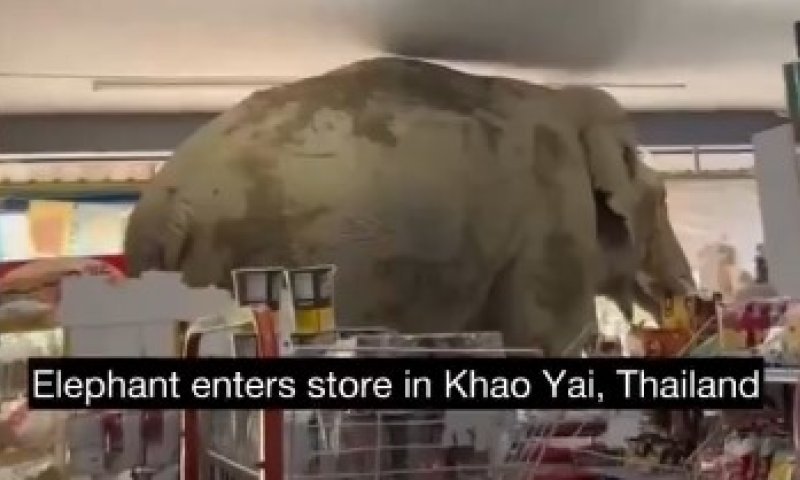 בתיעוד יוצא דופן שהופץ ברשתות החברתיות נראה פיל ענק שנכנס לחנות מכולת בקאו יאי, תאילנד והחל לזלול את תכולתה, עובדי החנות תיעדו את האירוע ופרסמו את הסרטון • צפו