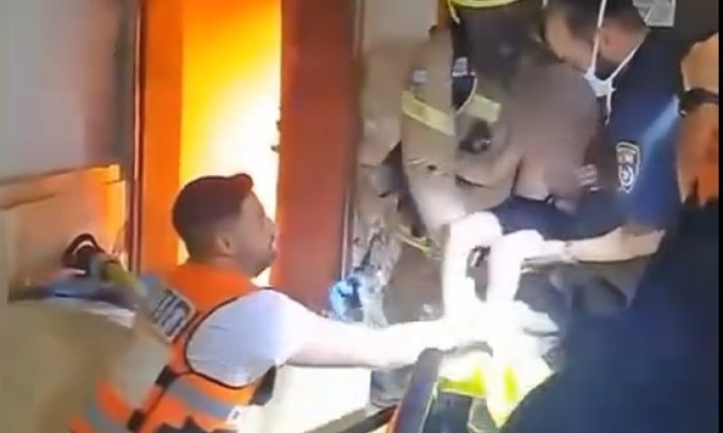 תיעוד דרמטי: הכבאים והחובש מחלצים ילד מדירה בוערת בבני ברק