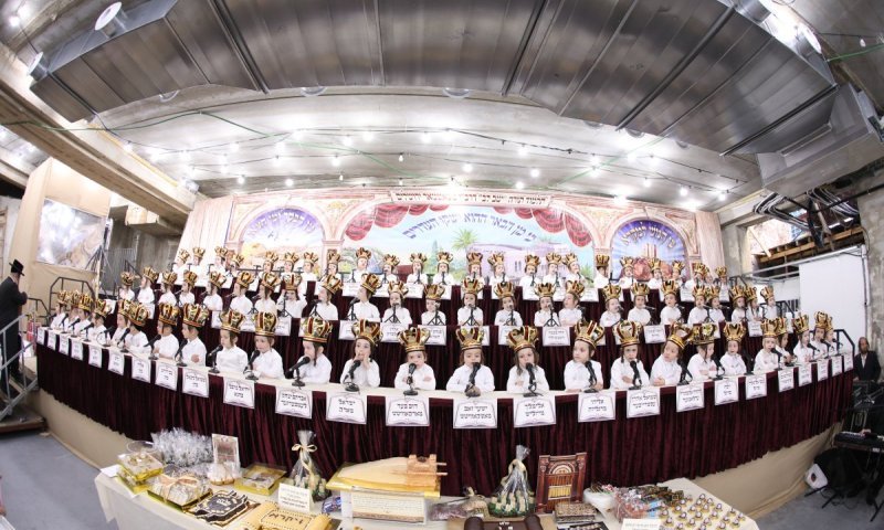 מעמד חומש סעודה לתלמידי כתה א' בת"ת יטב לב דרבינו יואל מסאטמר ירושלים בראשות הגה"צ רבי חיים צבי טייטלבוים אבד"ק ור"מ סאטמר ירושלים שחילק חומשים לילדים בני החמש.הצלם דוד ארזני מגיש גלריה