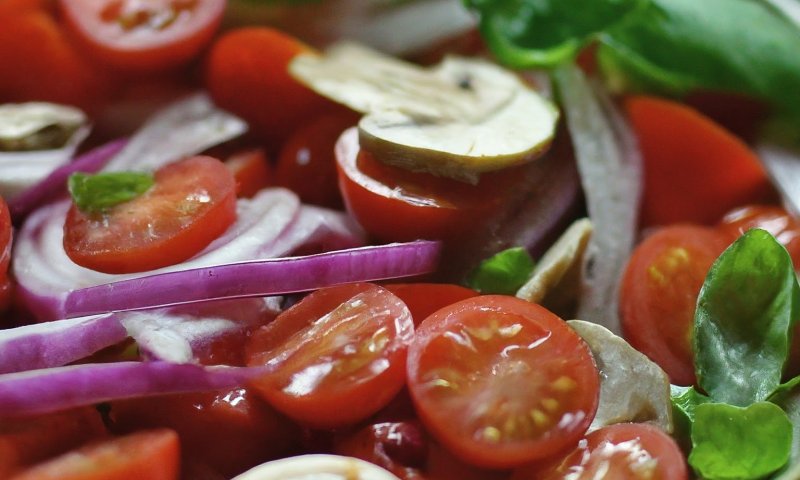 סלט פינוקים מעגבניות שרי, בצל סגול, פטריות שמפניון, פלפל חריף ובזיליקום שטעמתי בשבת חתן :)