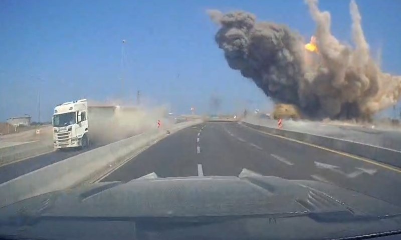 מצלמת הדרך תיעדה: רגע נפילת טיל סמוך לכביש ראשי בדרום