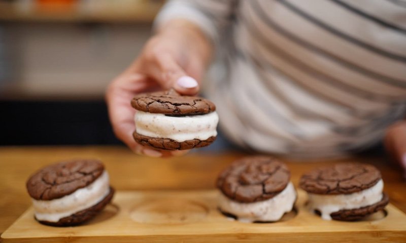 - מכניסים גלידה בטעם הרצוי לתבנית שקעים בגודל העוגיה ומקפיאים למשך שעתיים לפחות