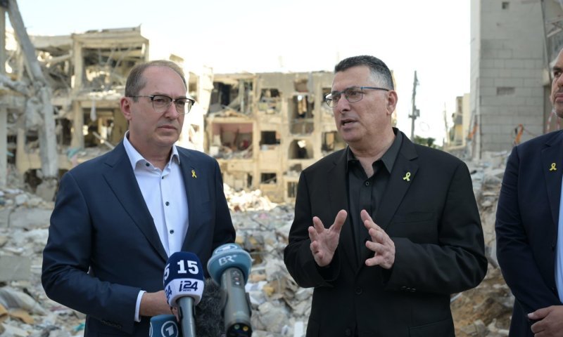 ביקור מדיני ראשון בישראל לאחר סיום מבצע ״עם כלביא״. שר החוץ גדעון סער עם שר הפנים של גרמניה באתר פגיעת הטיל בבת-ים: ״זו העת בה על מדינות הE-3 - אנגליה, גרמניה וצרפת - להפעיל את הסנאפ-בק, צעד ממשי שמצוי באמתחתן״
