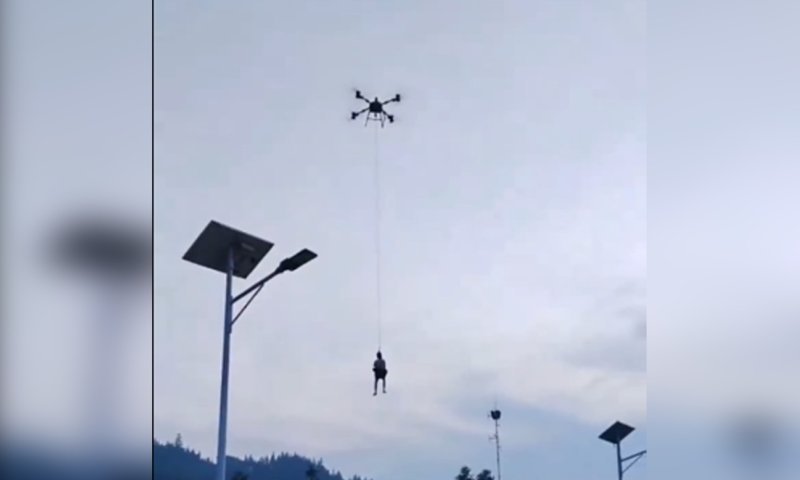 תיעוד דרמטי ויוצא דופן: רחפן מחלץ אדם משיטפונות הענק בסין