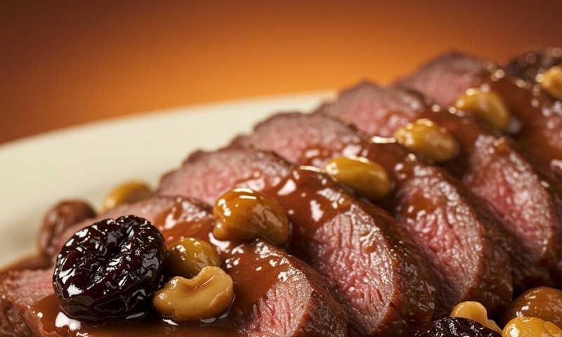 מכובד ומעודן לשבת: בשר בקר מתקתק עם שזיפים, אגוזים וערמונים