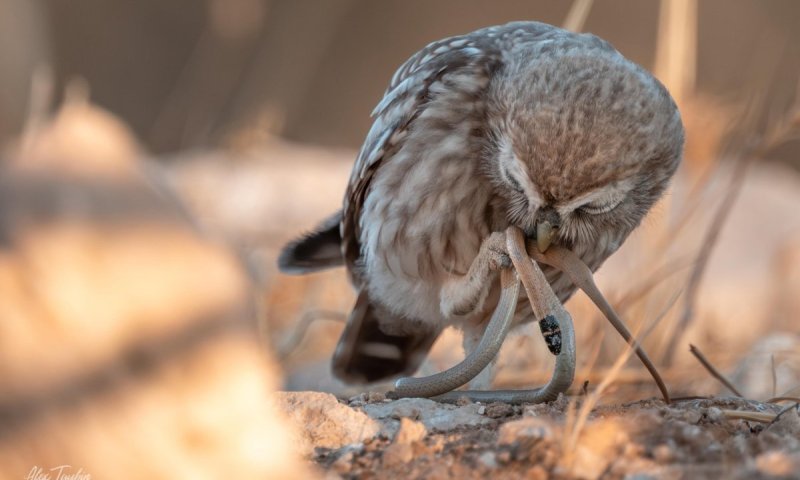 אלכס טאובין, מתנדב ברשות הטבע והגנים וצלם חובב, יצא ליער יתיר בניסיון לתפוס תמונה טובה. "אני מכיר נקודה בה יש משפחה של כוסות, אז החלטתי ללכת לשם, לחכות ולראות אולי אתפוס משהו מעניין" מספר אלכס. "עמדתי בשקט, מנסה להקשיב לקולות של כוסי חורבות וסרקתי את השטח עם העיניים, כשלפתע נשמעו קריאות חדות וחריגות ואחד מהם עף כשהוא מחזיק משהו שהזכיר לי ענף. רק דרך העדשה הבנתי שמדובר בנחש", התמונה המרגשת הפתיעה אפילו אותו, אלכס סיכם: "לפעמים כל מה שצריך זה לעצור, ולהקשיב והטבע כבר יעשה את השאר".