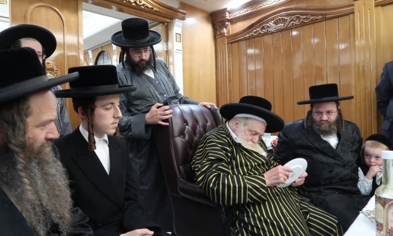 שמחת האירוסין לנכד האדמו"ר מתולדות אברהם יצחק, בן זקונים לחתנו הרה"צ רבי אליעזר צבי טויב אב"ד קאלוב ונכד האדמו"ר מקאלוב לרפו"ש, נערכה בבית הרבי במאה שערים, עם הכלה נכדת האדמו"ר מקרעטשניף, בת לבנו הרה"צ רבי זלמן לייב רוזנבוים רב קהילת קרעטשניף בברכפלד וחתן הרה"צ רבי אליעזר כהנא מספינקא י-ם. צפו בגלריה