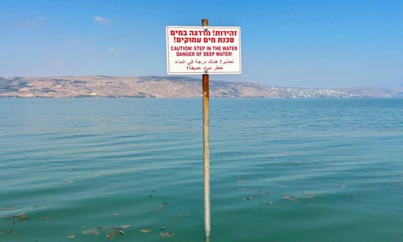 בגלל המפלס הנמוך: שלטי אזהרה חדשים בכינרת