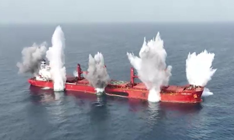 תיעוד מטורף: החות'ים מטביעים ספינה בריטית מול חופי תימן