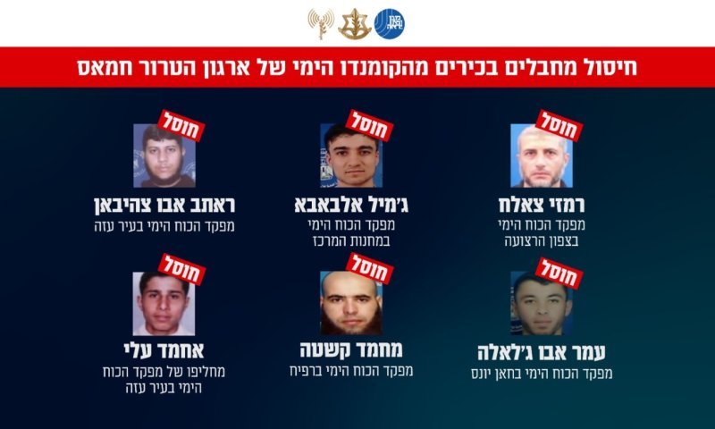 במבצעים משותפים של חיל הים, אגף המודיעין, שב"כ ופיקוד הדרום, חוסלו במהלך החודשים האחרונים ובמהלך מבצע 'מרכבות גדעון', שישה מחבלים מרכזיים בקומנדו הימי של ארגון הטרור חמאס.