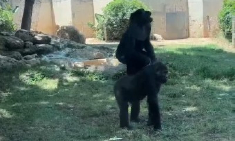 סרטון מיוחד מהספארי חושף רגע יוצא דופן של שיתוף פעולה בין גורילות, שהותיר את המבקרים בהלם | בתיעוד נראות שתי גורילות, לישה ואמליה, פועלות יחד: אחת מהן עולה על גבה של חברתה במטרה להצליח לקטוף פרי או עלים מהעץ • צפו