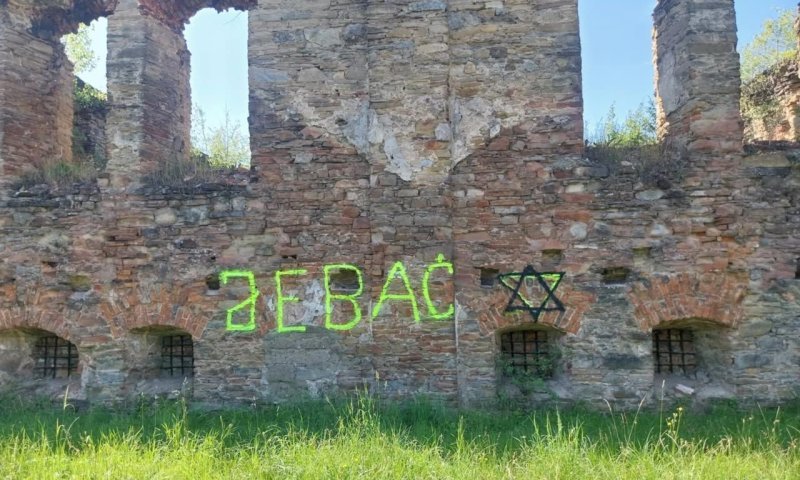 אלמונים ריססו כתובות נאצה נגד ישראל בשילוב צלבי קרס בשני אתרים יהודיים בעיירה דולקא בפולין. על קירות שרידי בית הכנסת המקומי וכן על מצבת זכרון בבית העלמין היהודי.