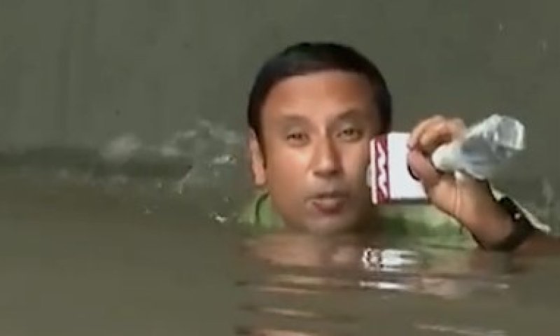 סרטון שהתפרסם לאחרונה ברשתות החברתיות תיעד כתב הודי מסור במיוחד לעבודתו כשהוא משדר מתוך השיטפונות | הסרטון שהופץ הפך במהרה לוויראלי תחת הכותרת "סך הכל מוסר עבודה" • צפו