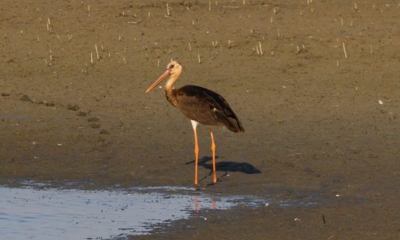 חסידה נדירה בצבע מוקה, בן כלאיים של חסידה שחורה ולבנה, תועדה לראשונה בישראל במאגר חולדה שבשפלה. זוהי התצפית השנייה בעולם מסוגה