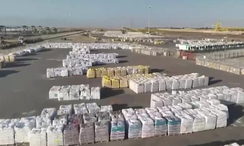 בסרטון שפורסם ע"י מתאם פעולות הממשלה בשטחים (מתפ"ש) ניתן לראות את תכולתן של 950 משאיות סיוע, שהיו אמורות להיות מחולקות על ידי סוכנויות האו"ם אך חלוקת הסיוע מתעכבת בשל עימותים בין סוכנויות האו"ם לבין קרן הסיוע GHF