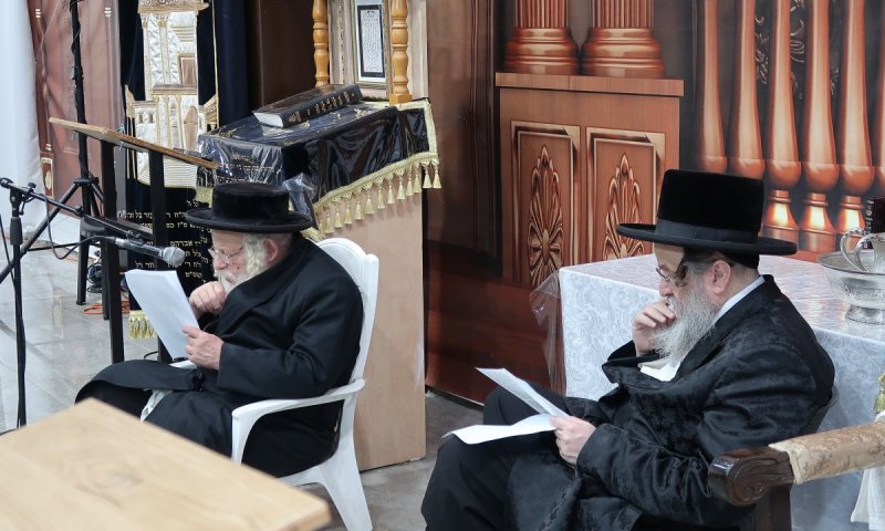 עצרת תפילה בתפילה לגאולה השלמה נערכה בבית המדרש הגדול דינוב בעיר ביתר בהשתתפות המקובל הצדיק רבי אברהם אביש ציינוירט שישב על כסא נמוך ולצידו האדמו"ר מדינוב ואמרו תיקון חצות. צפו בתיעוד