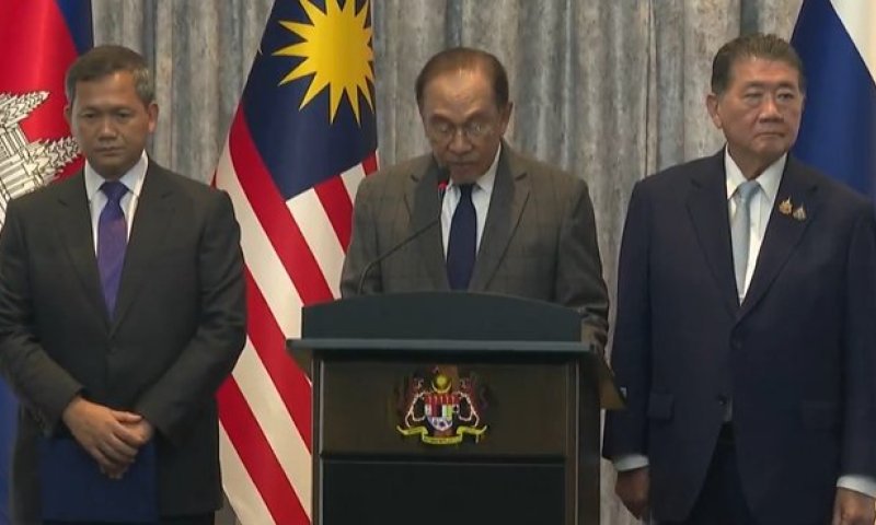 ראש ממשלת מלזיה, אנואר אבראהים, הכריז על הפסקת אש בין תאילנד לקמבודיה, בהצהרה משותפת עם מנהיגי המדינות. הפסקת האש תתחיל בחצות, שעון תאילנד וקמבודיה (לפנות בוקר שעון ישראל).