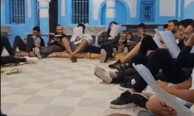 אתמול (ראשון) צום תשעה באב, התכנסו קהילת יהודי ג'רבה שבתוניסיה לאמירת קינות ותפילות | בתיעודים נראים בני הקהילה כשהם יושבים על הקרקע ומקוננים על חורבן בית המקדש