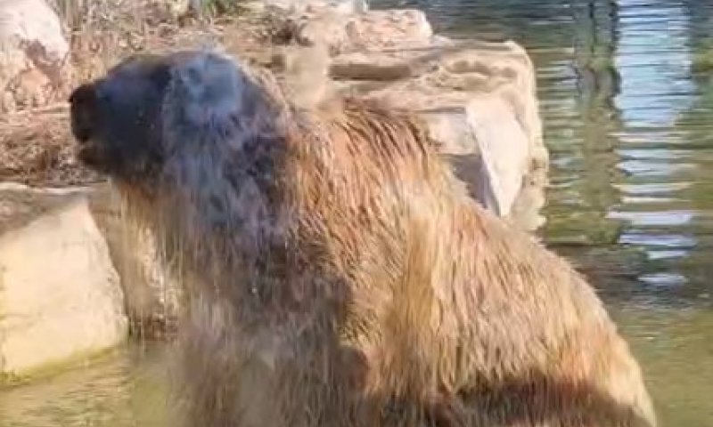 בספארי מנסים לקרר את בעלי החיים בימי הקיץ החמים. שתי הדובות החומות סוריות, זן שנכחד מהטבע בארץ ישראל, נהנו היום במיוחד ממקלחות מים קרירים ומהעשרות קפואות שמסייעות להן להתמודד עם החום