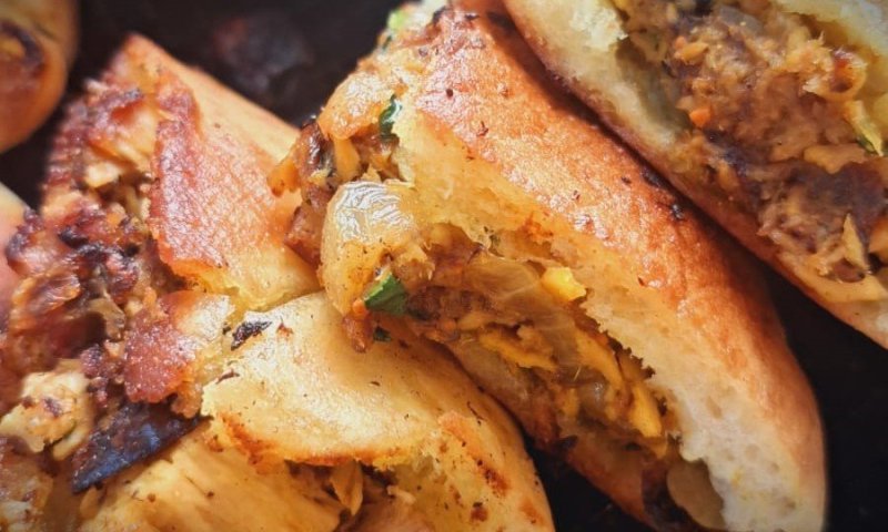 - ממלאים את רבעי הפיתות בשווארמה טונה ומטגנים מכל הצדדים עד להשחמה
