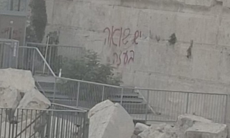הבוקר (שני) התגלה הכיתוב "יש שואה בעזה" על אבני הכותל המערבי, בשטחו הדרומי, מעשה שהוגדר על ידי הנהלת הכותל כ"חמור המהווה חילול הקודש ופגיעה בקדושתו של המקום הקדוש ביותר לעם היהודי".