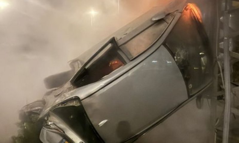 גנב רכב, ברח והתנגש בעמוד, השוטרים חילצו אותו מהרכב הבוער