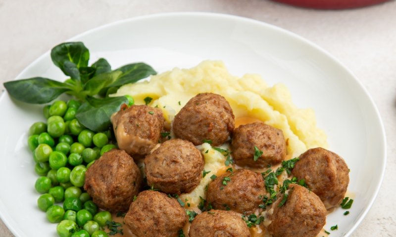כדורי בשר מטוגנים ועסיסיים ברוטב אפונה