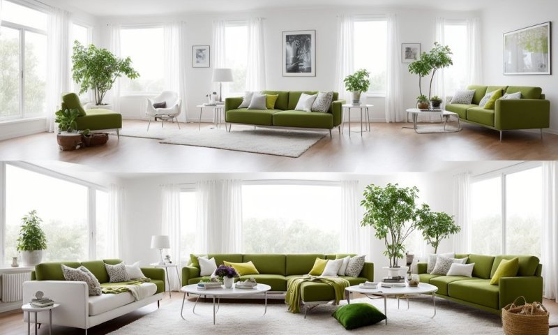 צמחייה ירוקה מהווה הניגוד המושלם ללבן ומביאה את הטבע פנימה. צמחי בית גדולים כמו פיקוס או מונסטרה, או צמחים קטנים יותר על מדפים ושולחנות, יוצרים נקודות צבע טבעיות ומרעננות.