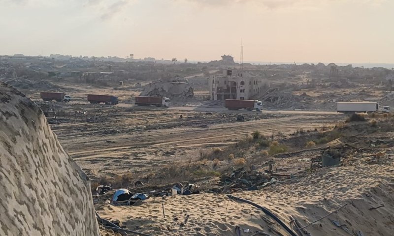 חמאס וארגוני הטרור ממשיכים לפעול להכשלת חלוקת הסיוע ההומניטרי: זוהה שיגור לעבר ציר אספקת משאיות סיוע בדרום הרצועה, שנפל כ-300 מטרים מהציר