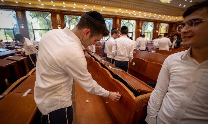 מאות בחורי ישיבת 'עטרת שלמה' מסתערים לתפוס מקום בתחילת זמן אלול בבית המדרש. הצלם שלומי כהן תיעד את הבחורים תופסים את המקומות ומגיש וידאו