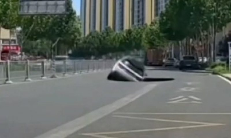 סין: בולען נפער במרכז הכביש – מכונית נפלה פנימה
