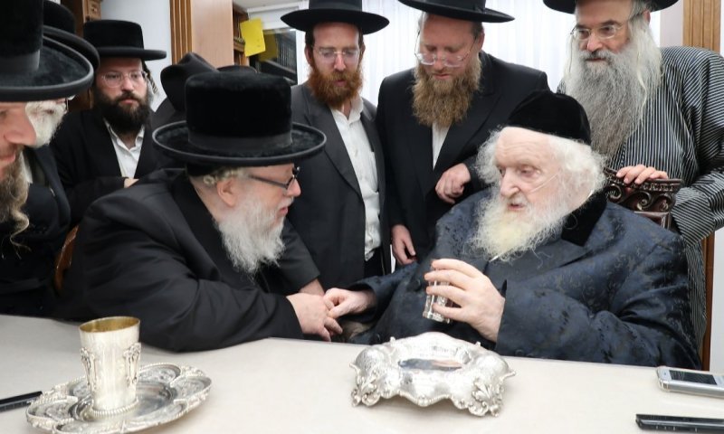 לקראת ימי הרחמים והסליחות, ערך השבוע האדמו"ר מבוהוש שליט"א ביקור מיוחד במעונו של פוסק הדור הגר"מ שטרנבוך, להתברך בברכת השנים.