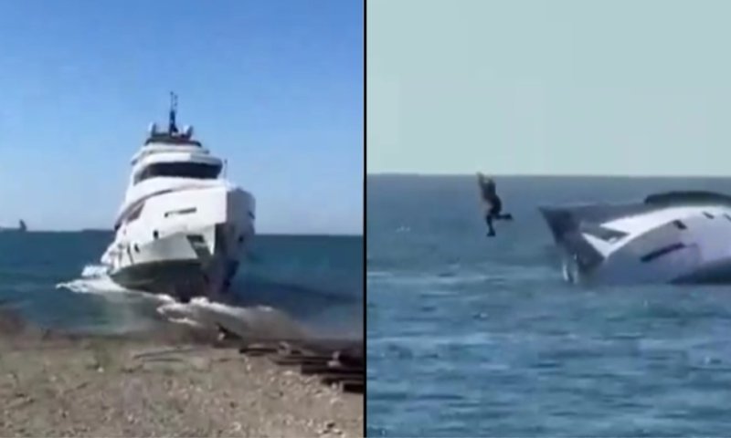 השקה של יאכטה יוקרתית בטורקיה הפכה בתוך דקות לאירוע מביך ועגום. תיעוד שהופץ ברשתות החברתיות הבוקר (חמישי) מציג את הרגע בו היאכטה, המוערכת בכמיליון דולר, מאבדת את יציבותה, מתהפכת על צידה והתמלאה במים כשמפעיל היאכטה נאלץ לקפוץ למים • צפו
