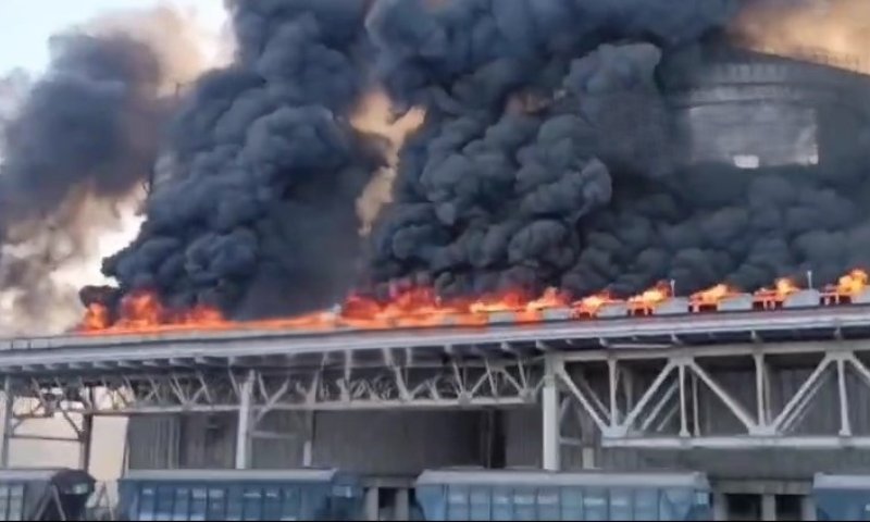 צפו: שריפה ענקית בנמל בעיר צ'ורנומורסק, אוקראינה
