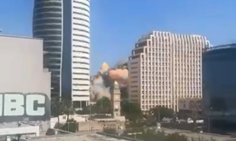 במהלך מלחמת "עם כלביא", בצהרי יום שישי, 20 ביוני, פגע טיל באזור "בניין הטיל" מגדל משרדי הממשלה על שם ראש הממשלה לשעבר יצחק רבין בעיר התחתית של חיפה. התיעודים מהפגיעה פורסמו היום (ראשון), כחודשיים וחצי לאחר האירוע, שגרם לפציעתם של 55 בני אדם. ראש העיר יונה יהב, ציין כי הפגיעה פגעה ב"שתי נקודות אסטרטגיות בעיר".